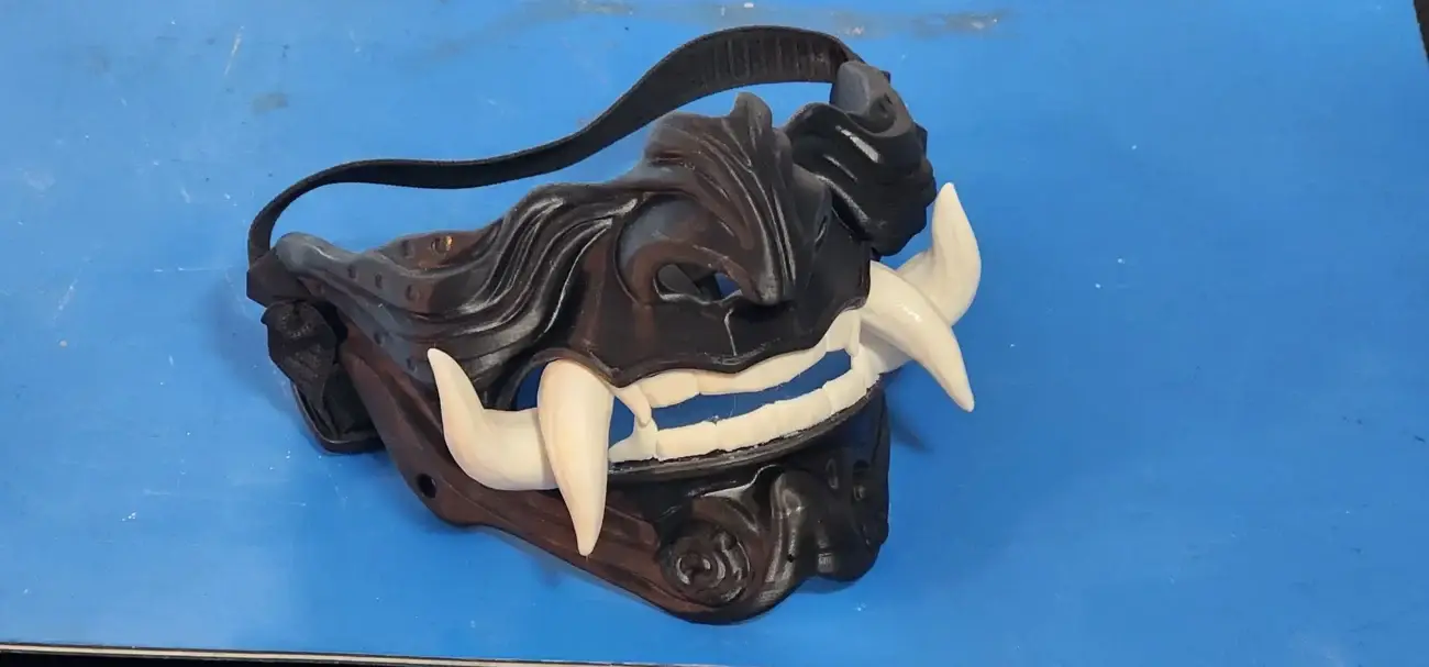 Bold facial expression with detailed horns and fangs