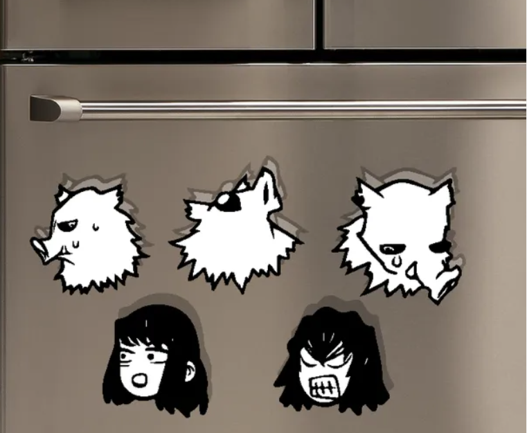 Inspired by Inosuke Hashibira from the anime Demon Slayer, this set showcases multiple expressive faces that capture Inosuke’s wild, aggressive, and humorous personality. These magnets are commonly used on refrigerators, lockers, office cabinets, and other metal surfaces.