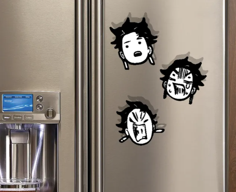 Inspired by Tanjiro Kamado from the anime Demon Slayer, this magnet set captures multiple facial expressions that reflect the character’s emotions and energy. It is commonly used on refrigerators, lockers, office cabinets, or any magnetic surface.